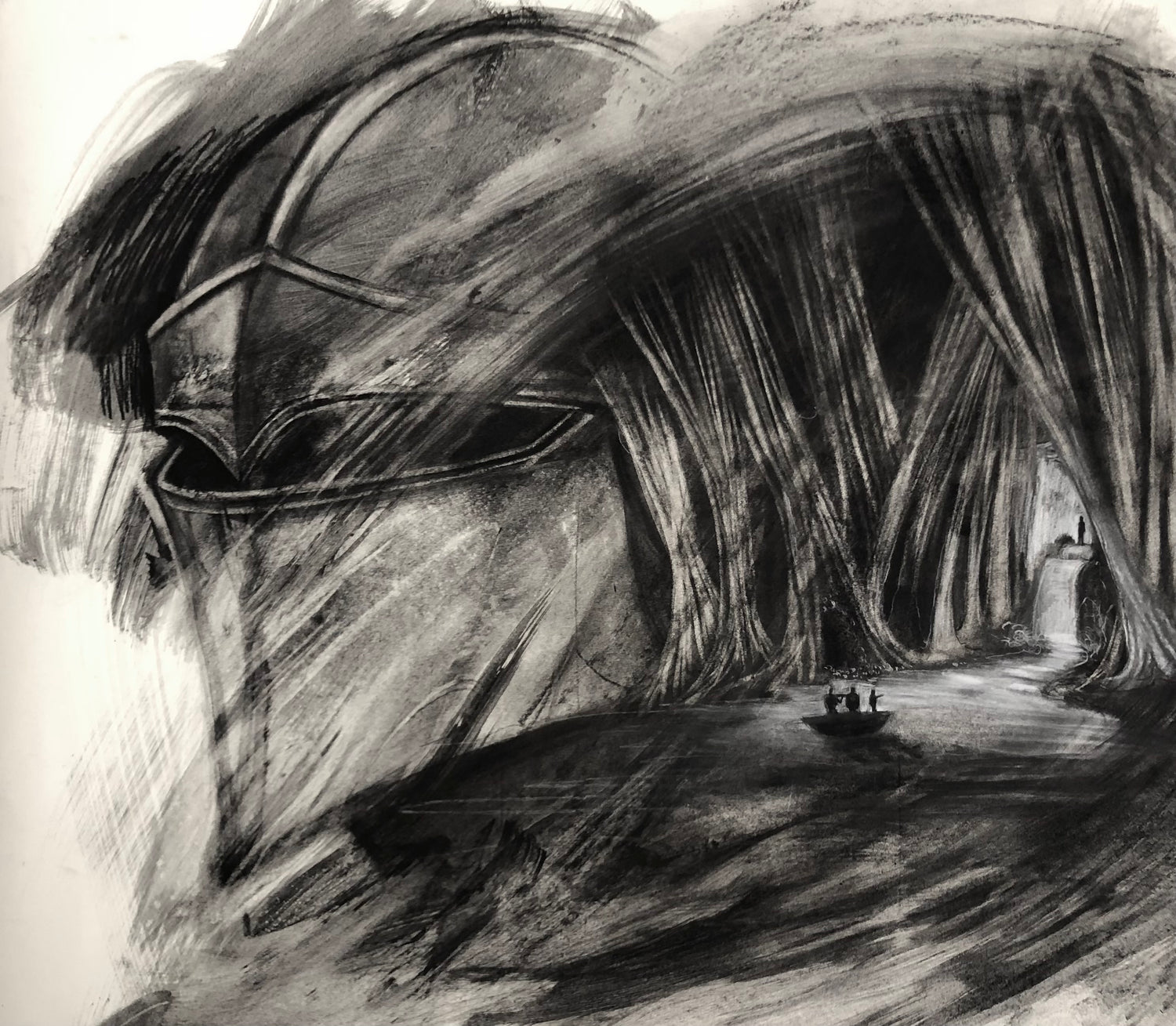 22x30 inch charcoal powder on watercolor paper.