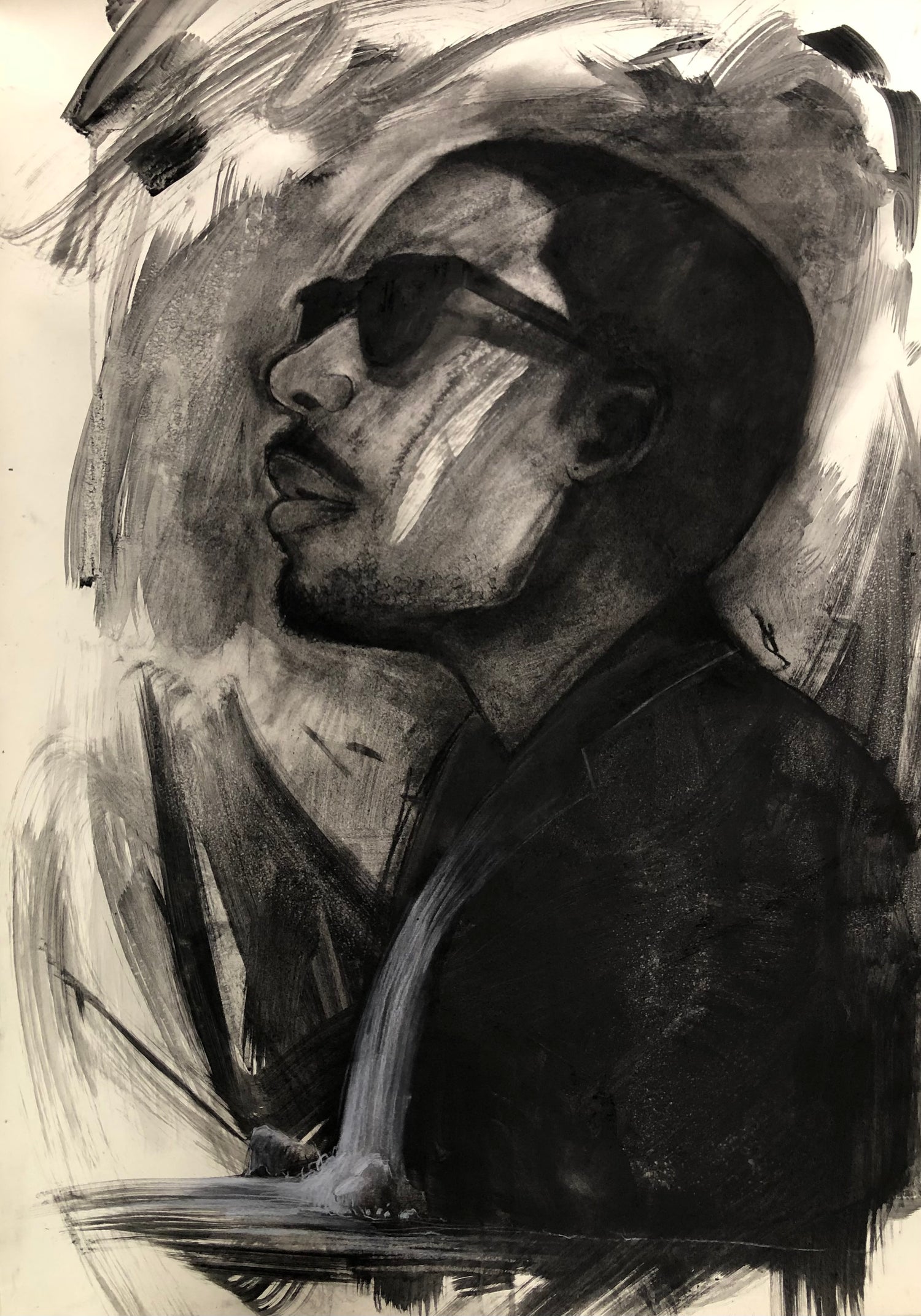 Oracle in Shade depicts a figure standing confidently before a cascading waterfall, his presence both grounded and enigmatic. The sunglasses add a layer of modern detachment, yet his posture suggests awareness and quiet authority, as if he holds secrets whispered by the flowing water.